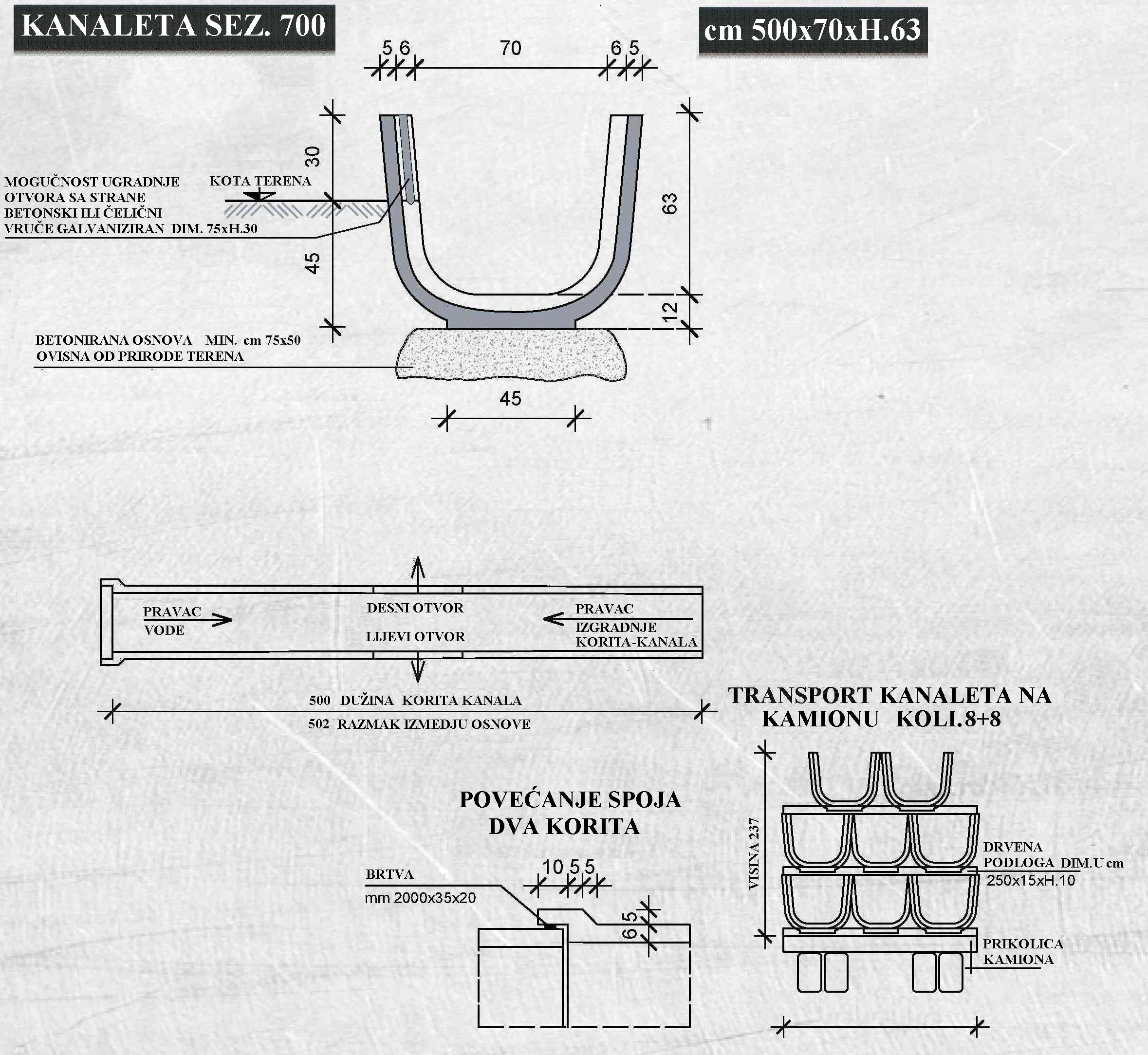 Betonske rešetke s okruglom rupom debljine od. visine rešetk 25 cm