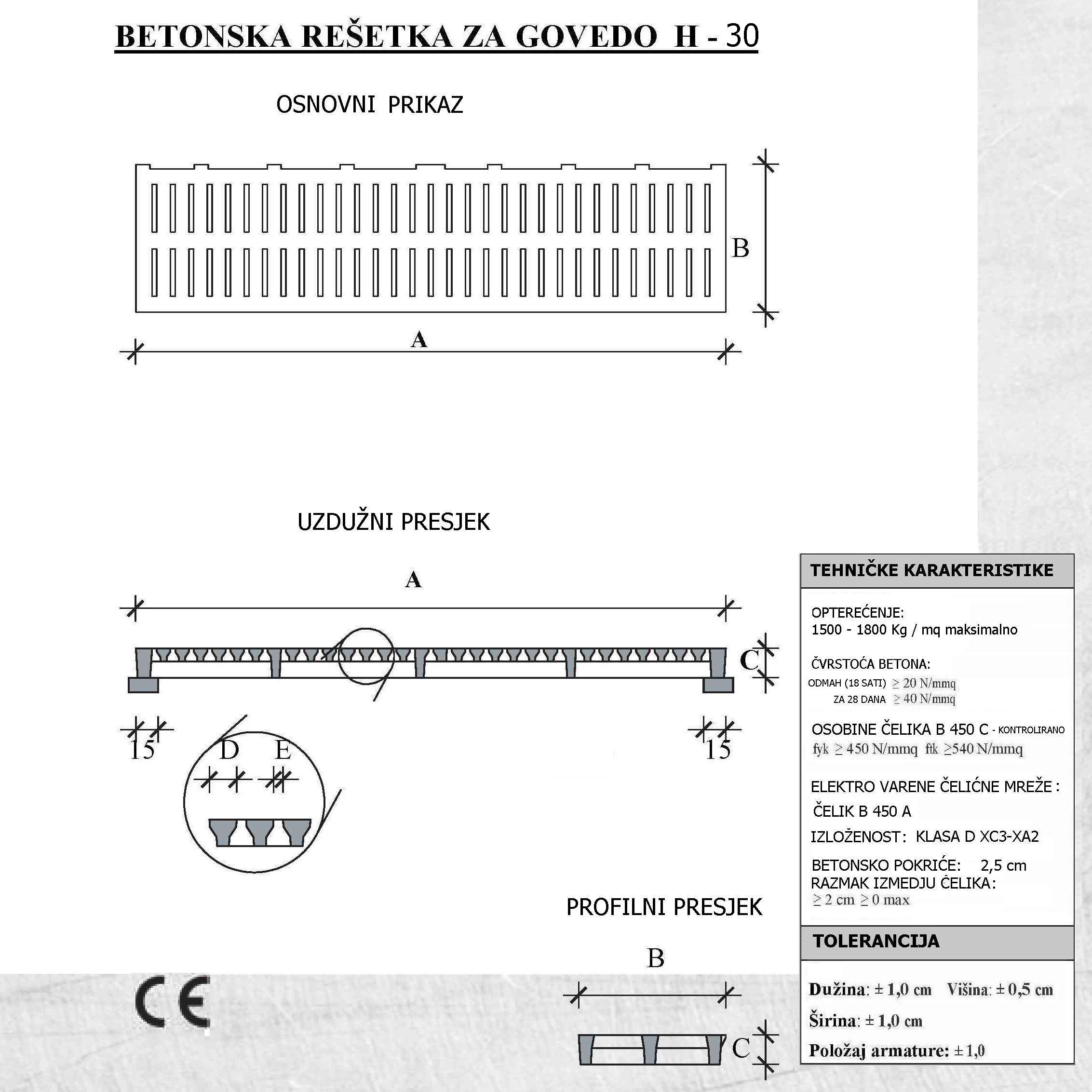 - Betonske rešetke za svinje, visine 18 cm sa rupom širine 2,0 cm